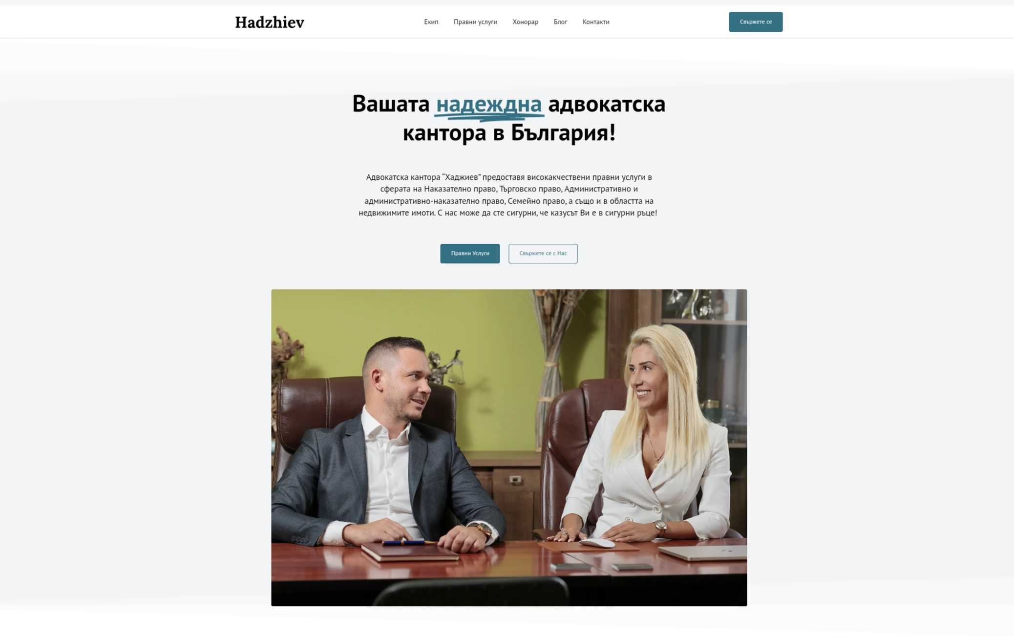 Created a modern and interactive website for a Bulgarian lawyer’s office “Hadzhiev”. Lawyer Kristian Hadzhiev and his office are equipped with certificates and are popular among social networks, with tens of thousands of followers.